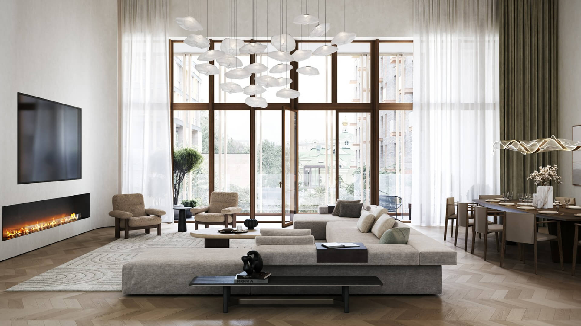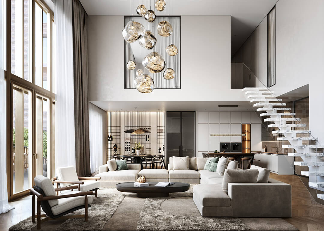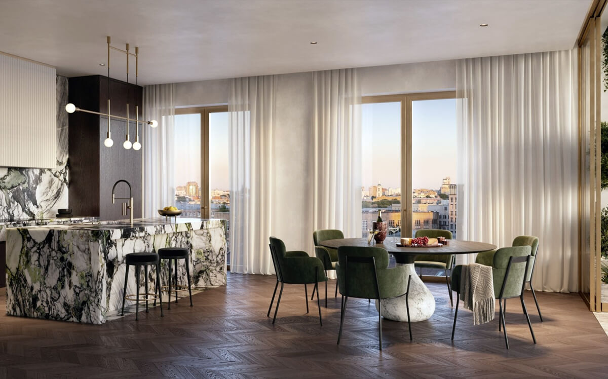 Панорамные окна дома открывают захватывающие виды Москвы. Вид на Кремль, колокольню Ивана Великого, Бульварное кольцо и высотку на Котельнической набережной. Исторические периоды и архитектурные символы становятся частью вашей жизни в Тессинском переулке.
