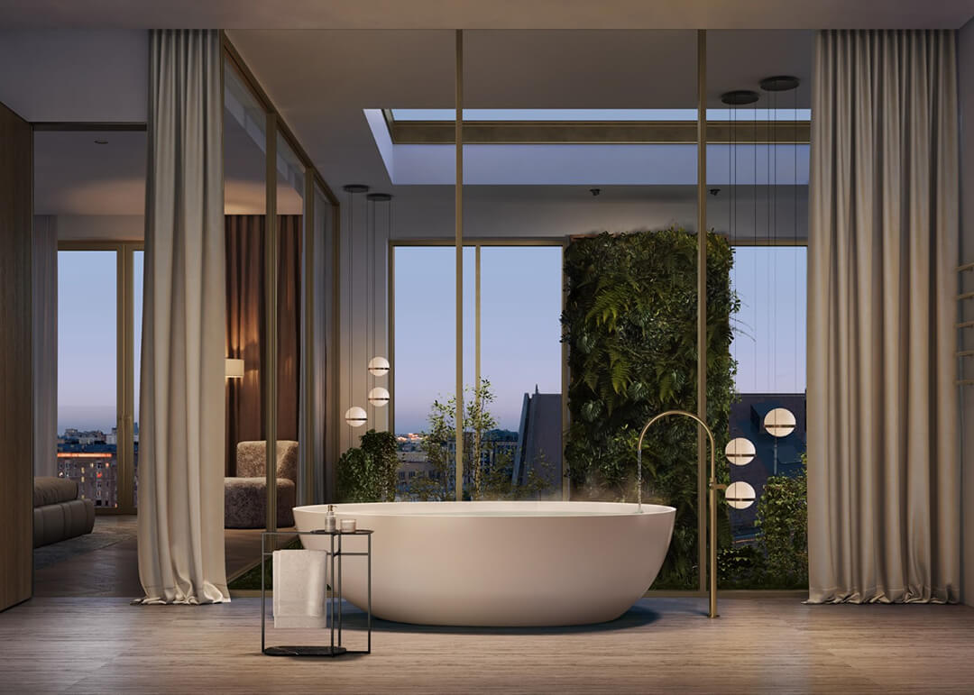 Что может сравниться с ощущением свободы, которое дарит пентхаус? Его полная приватность сочетается с великолепным панорамным видом. Терраса идеальна для чтения или встреч с друзьями, а также для полного уединения.