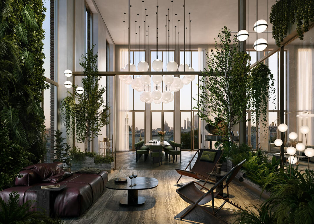 Пентхаус - это свидетельство о самореализации. Простор, два уровня с высокими потолками, окна с двух или трех сторон, дровяной камин и терраса с зимним садом - каждая деталь пространства подтверждает высокий статус владельца.